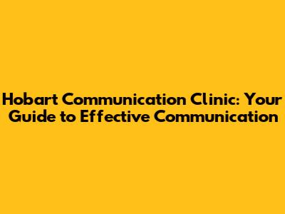 Hobart Communication Clinic: Your Guide To Effective Communication