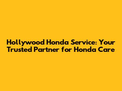 Hollywood Honda Service: Expert Care For Your Honda