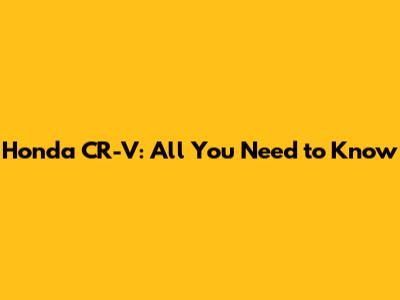 Honda CR-V: All You Need To Know