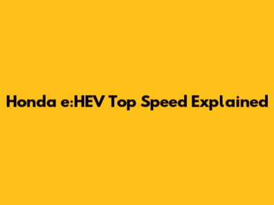 Honda E:HEV Top Speed Explained