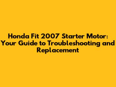 Honda Fit 2007 Starter Motor: Troubleshooting & Replacement