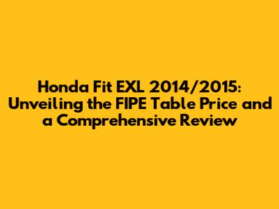 The Honda Fit EXL 2014/2015 is a smart choice for those seeking a practical, fuel-efficient, and versatile vehicle. Its spacious interior, reliable performance, and available features make it a compelling option in the compact car segment. By understanding the FIPE table price and conducting thorough research, you can ensure you're getting a fair deal on a great car.