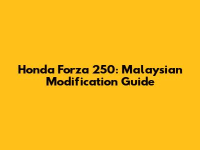 Honda Forza 250: Malaysian Modification Guide