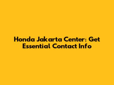Honda Jakarta Center: Get Essential Contact Info