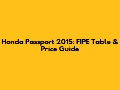 Hey guys! Are you curious about the Honda Passport 2015 FIPE table and everything related to its pricing? Well, you've come to the right place! This article is your comprehensive guide to understanding the FIPE values, market prices, and factors influencing the cost of a 2015 Honda Passport. So, buckle up and let's dive in!
