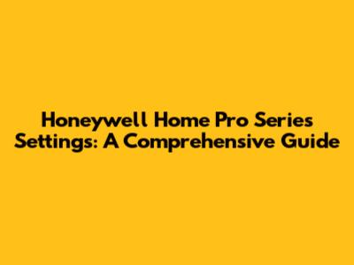 Honeywell Home Pro Series Settings: A Comprehensive Guide