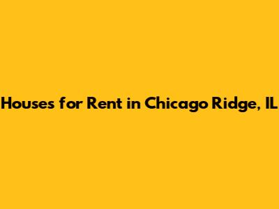 Houses For Rent In Chicago Ridge, IL