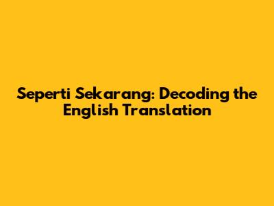 To make things super clear, let's address some common questions people have when trying to translate "seperti sekarang."