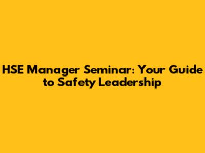 HSE Manager Seminar: Your Guide To Safety Leadership