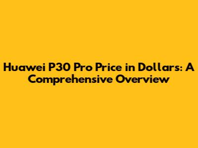 Huawei P30 Pro Price In Dollars: A Complete Guide
