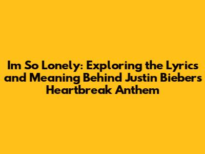 I'm So Lonely: Lyrics Deep Dive & Meaning By Justin Bieber