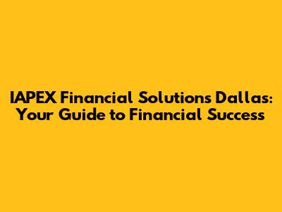 In conclusion, IAPEX Financial Solutions in Dallas can be a valuable resource for individuals and businesses seeking expert financial guidance. By understanding the services offered, the benefits of choosing IAPEX, and how to find and work with their advisors, you can take control of your financial future and achieve your goals. Remember to actively participate in the planning process, communicate openly with your advisor, and conduct regular reviews to ensure that your financial plan remains aligned with your evolving needs. With the right approach, IAPEX Financial Solutions can help you navigate the complexities of the financial world and build a secure and prosperous future.