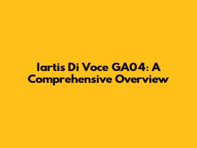 Iartis Di Voce GA04: A Comprehensive Overview