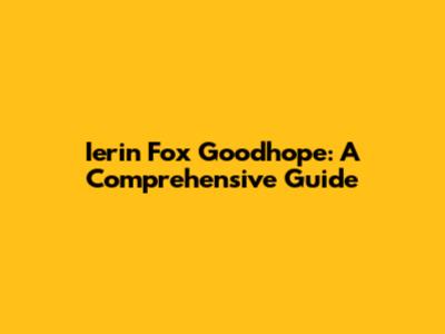 Ierin Fox Goodhope: A Comprehensive Guide