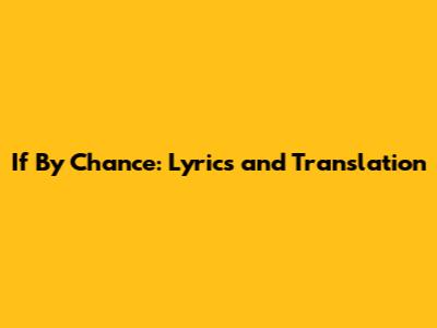 If By Chance: Lyrics And Translation - Meaning Explained