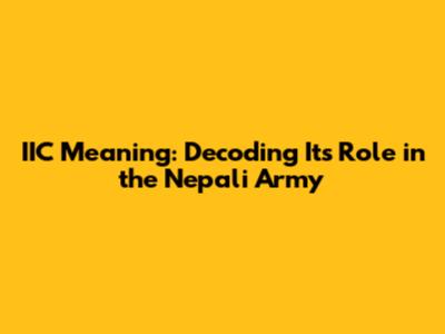 IIC Meaning: Unveiling Its Role In The Nepali Army