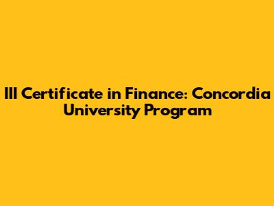 III Certificate In Finance: Concordia University Program