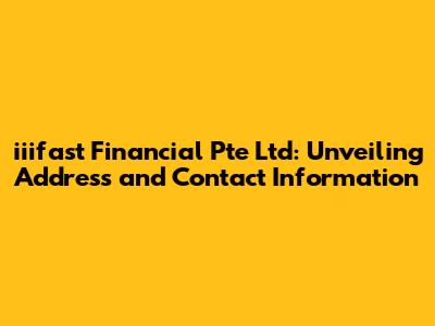 Hey there, finance enthusiasts! Let's dive into the details of iiifast Financial Pte Ltd, specifically their address and how you can get in touch with them. Finding the right financial partner can be a game-changer, and knowing where they're located and how to reach them is super important. We're going to break down the information, making it easy to understand and readily available for you. This is your go-to guide for all things iiifast, keeping you informed and in the know.