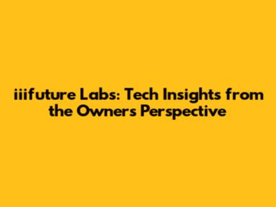 Iiifuture Labs: Tech Insights From The Owner's Perspective
