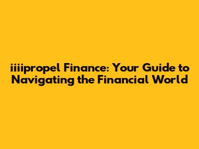 Iiiipropel Finance: Your Guide To Navigating The Financial World