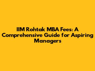 Unveiling the IIM Rohtak MBA Fee Structure: What You Need to Know