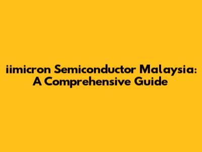 Iimicron Semiconductor Malaysia: A Comprehensive Guide