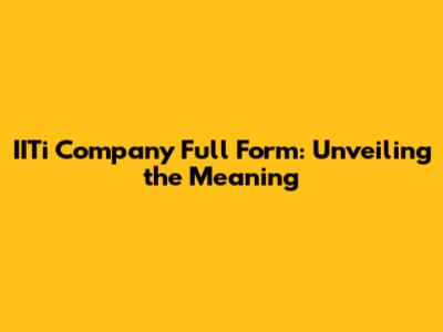 IITi Company Full Form: Unveiling The Meaning