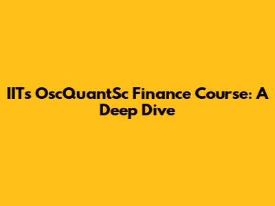 IIT's OscQuantSc Finance Course: A Deep Dive