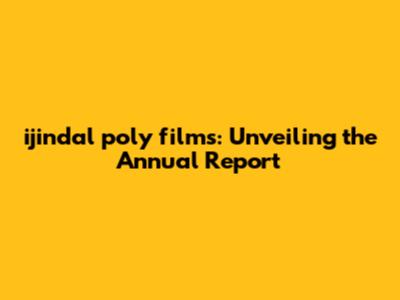 Ijindal Poly Films: Unveiling The Annual Report