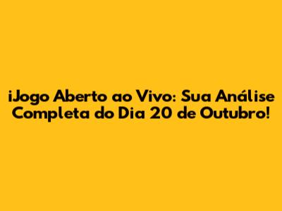 IJogo Aberto: Assista Ao Vivo Em 20 De Outubro!
