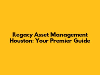 Hey guys! Ever feel like navigating the world of ilegacy asset management is like trying to solve a Rubik's Cube blindfolded? It can be super complex, right? Well, if you're in Houston and looking for some guidance, you've landed in the right spot. This article is your ultimate guide to understanding ilegacy asset management, especially tailored for the Houston market. We'll break down everything you need to know, from the basics to the nitty-gritty, ensuring you feel confident in making informed decisions about your assets. Let's dive in and demystify the world of ilegacy asset management together!