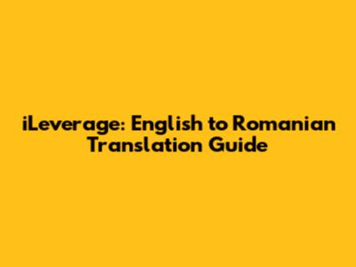 ILeverage: English To Romanian Translation Guide