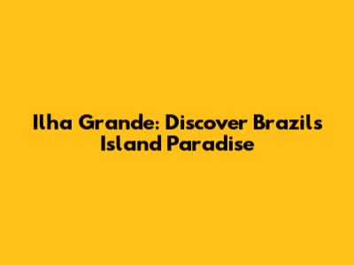 Ilha Grande: Discover Brazil's Island Paradise
