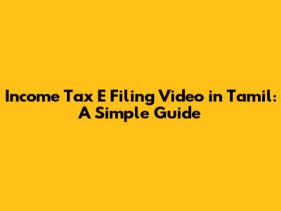 Income Tax E Filing Video In Tamil: A Simple Guide
