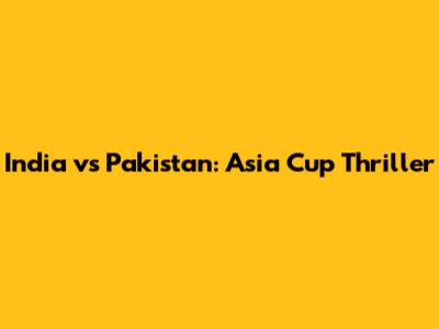 India Vs Pakistan: Asia Cup Thriller