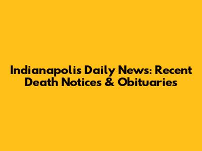 Indianapolis Daily News: Recent Death Notices & Obituaries