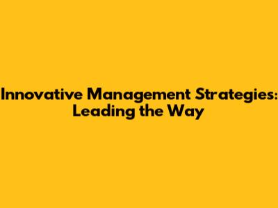 Innovative Management Strategies: Leading The Way