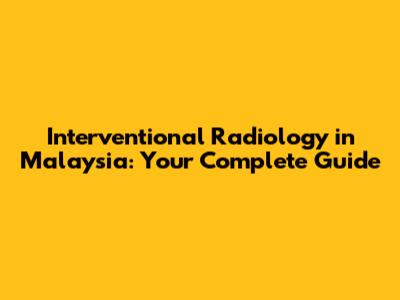 Interventional Radiology In Malaysia: A Comprehensive Guide