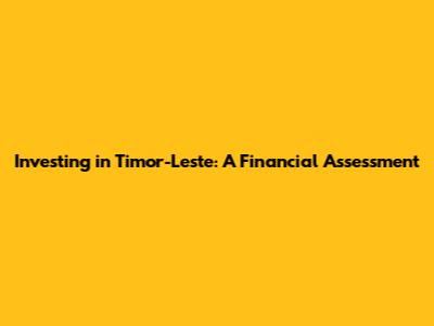 Investing In Timor-Leste: A Financial Assessment