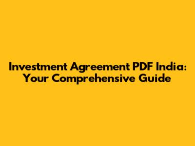 Investment Agreement PDF: Your Indian Guide
