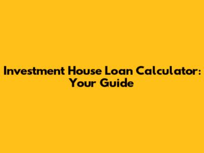 Investment House Loan Calculator: Your Guide