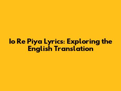 Io Re Piya Lyrics: Exploring The English Translation