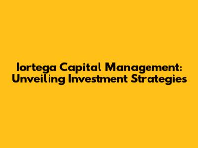 Iortega Capital Management: Unveiling Investment Strategies