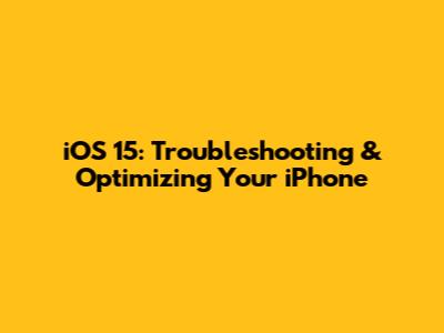 IOS 15: Troubleshooting & Optimizing Your IPhone