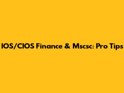IOS/CIOS Finance & Mscsc: Pro Tips