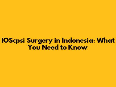 IOScpsi Surgery In Indonesia: What You Need To Know