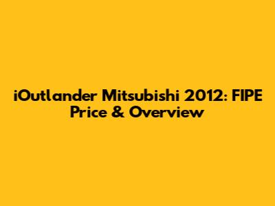 Hey guys! Today, we're diving deep into the iOutlander Mitsubishi 2012, focusing particularly on its FIPE price and giving you a comprehensive overview. If you're thinking about buying or selling this car, or you're just curious about its market value, you've come to the right place. Let's get started!