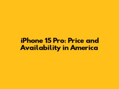 IPhone 15 Pro: Price And Availability In America