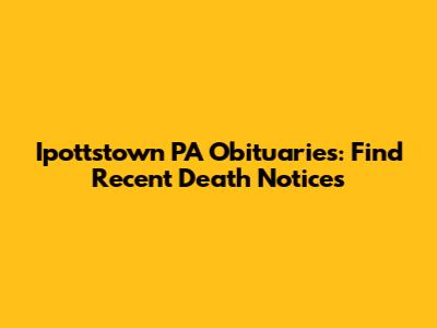 Are you looking for Ipottstown, PA obituaries? Searching for obituaries can be a difficult and emotional task, but it's an important way to honor the lives of loved ones and stay connected to your community. In this article, we'll explore how to find obituaries in Ipottstown, PA, and provide some helpful resources to make the process easier. Whether you're trying to locate a specific obituary or simply want to stay informed about recent deaths in the area, this guide will provide you with the information you need. Let's dive in and explore the world of Ipottstown obituaries together.