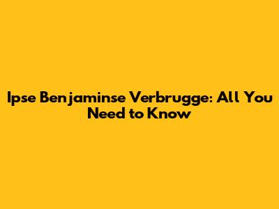 Ipse Benjaminse Verbrugge: All You Need To Know